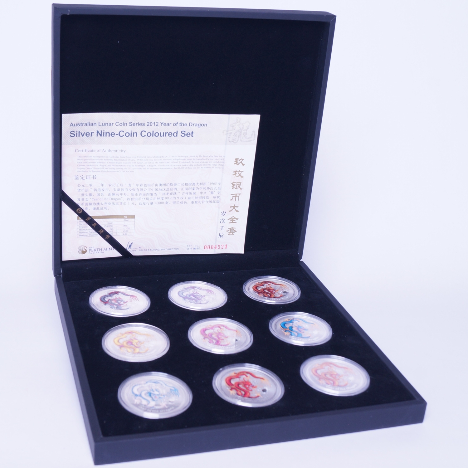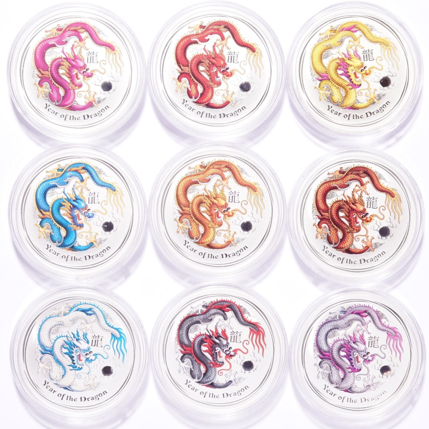 2012 Year of the Dragon Silver Colorized 9-Coin Set