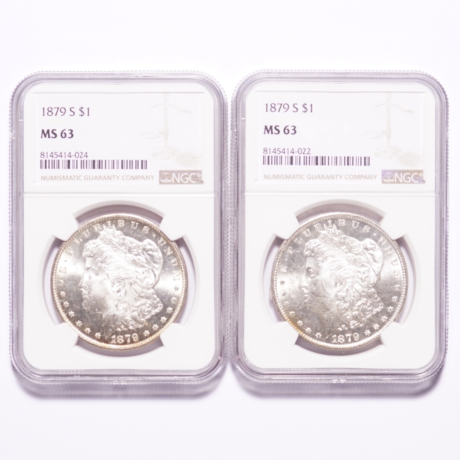 • 1879-S Morgan Silver Dollar NGC MS63 2-Coin Lot