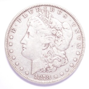 This is an 1878 Morgan Silver Dollar 7TF Rev of ’78. The photographs are of the exact coin you will receive.