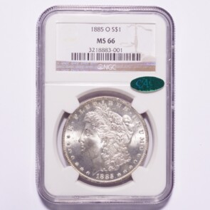 This is an 1885-O Morgan Silver Dollar NGC MS66 CAC. The photographs are of the exact coin that you will receive.