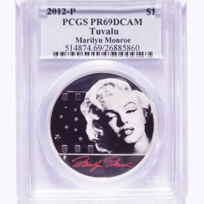 This is a 2012-P Tuvalu Silver $1 Marylin Monroe PCGS PR69DCAM. The pictures are of the exact coin your will receive.