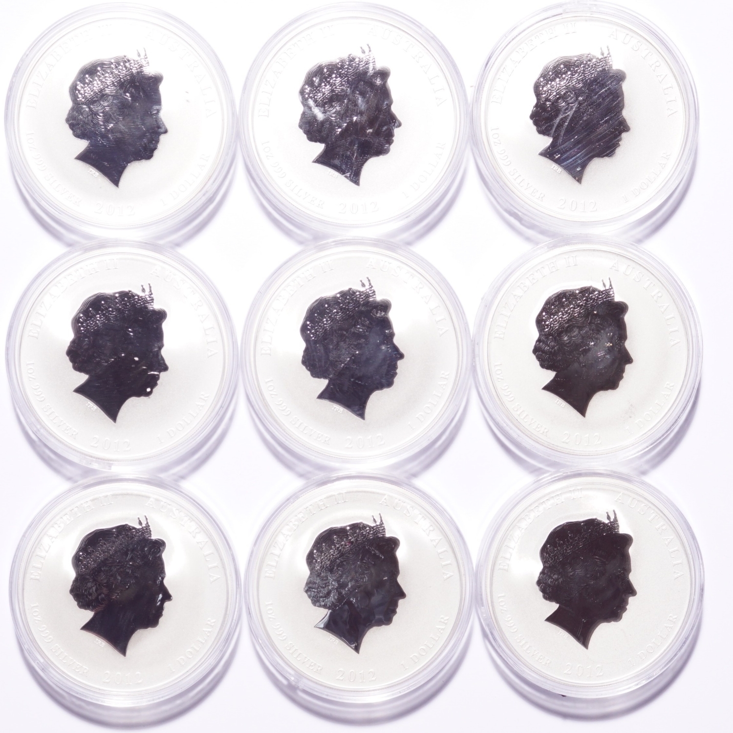 This is a 2012 Year of the Dragon Silver Colorized 9-Coin Set. The pictures are of the exact coins you will receive.