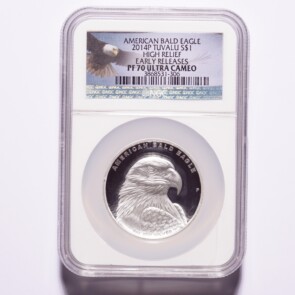 This is a 2014P Tuvalu Silver $1 American Bald Eagle High Relief NGC PF70 Ultra Cameo Early Releases. The photographs are of the exact coin you will receive.