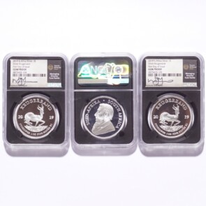 This is a 2019 South Africa Krugerrand Silver 1 Rand NGC Gem Proof Tumi Tsehlo. These holders are hand-signed by the managing director of the South African Mint.  You will only receive one of these coins per order. The photographs are of the exact coins you would receive.