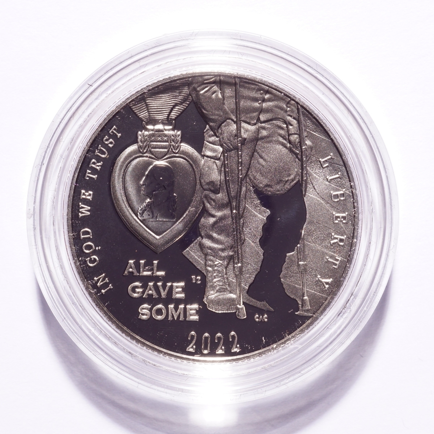 This is a 2022-S National Purple Heart Hall of Honor Proof Clad Half Dollar. The photographs are of the exact coin you will receive.